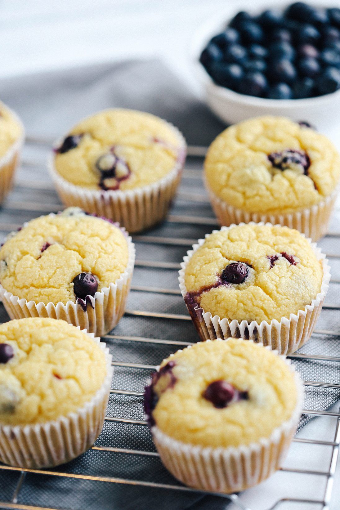 Lemon + blueberry might be one of my favorite flavor combinations, especially in bread and muffin recipes, and lemme tell you – these puffed up so beautifully!  I was so excited to eat them that I could barely wait for them to come out of the oven!  I actually ended up bringing these into work and they were such a huge hit among everyone in the office that I knew I had to share them with you all too!